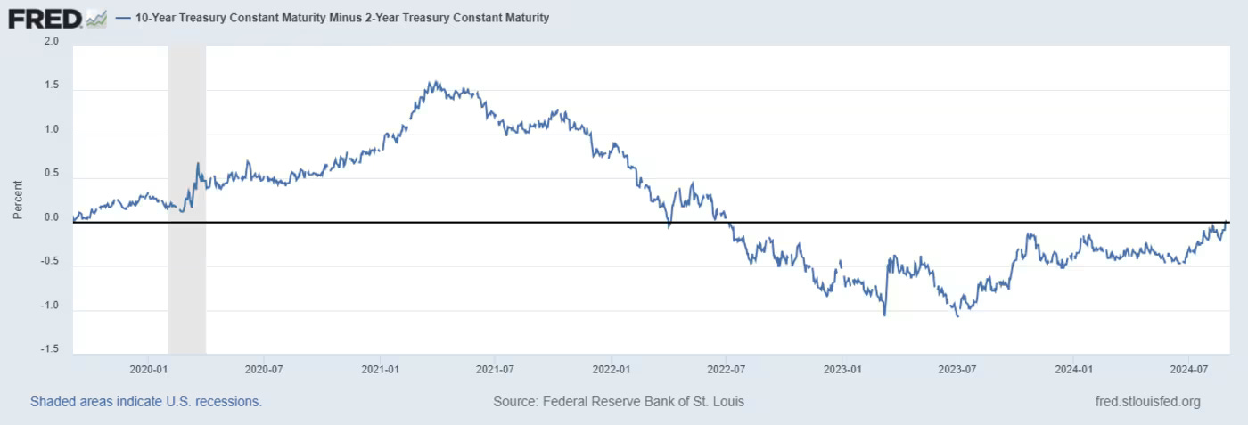 The U.S. Treasury yield curve is nearing a critical shift as the 2-year yield is close to falling below the 10-year yield for the first time since 2022, signaling a potential recession. Historically, the un-inversion of this curve, after a prolonged inversion, has been a reliable recession indicator. Investors are also closely watching Friday’s unemployment report to assess economic strength. While some experts, like Guy LeBas from Janney Montgomery Scott, believe a recession may still be avoided, the aggressive pricing of rate cuts suggests heightened concerns about economic downturns. Markets remain volatile, with mixed stock performance following previous un-inversions. (Market Watch)